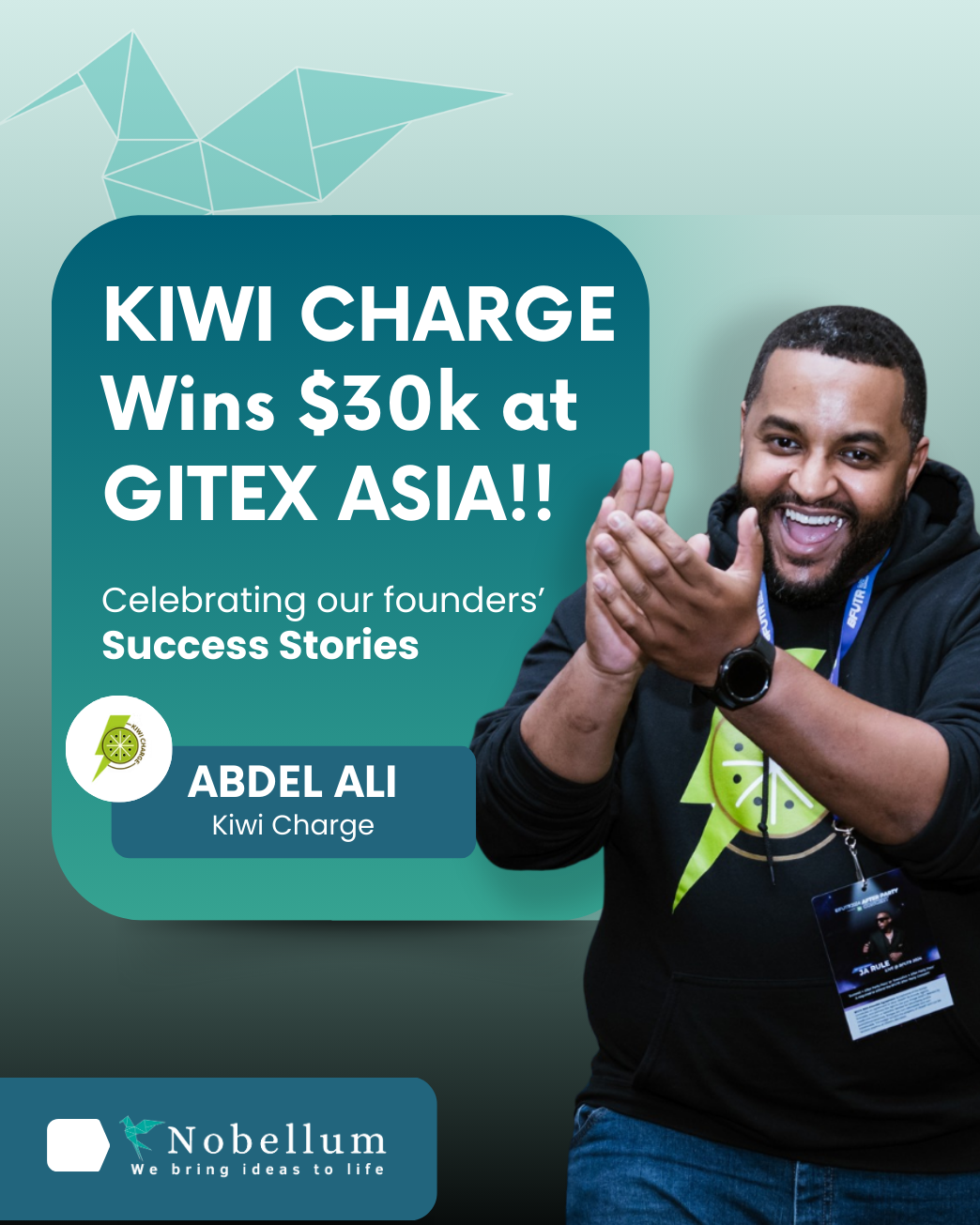Abdel’s journey from international pitch competition to landmark government and corporate partnerships is a win for every single founder in the Nobellum ecosystem. It proves that:
