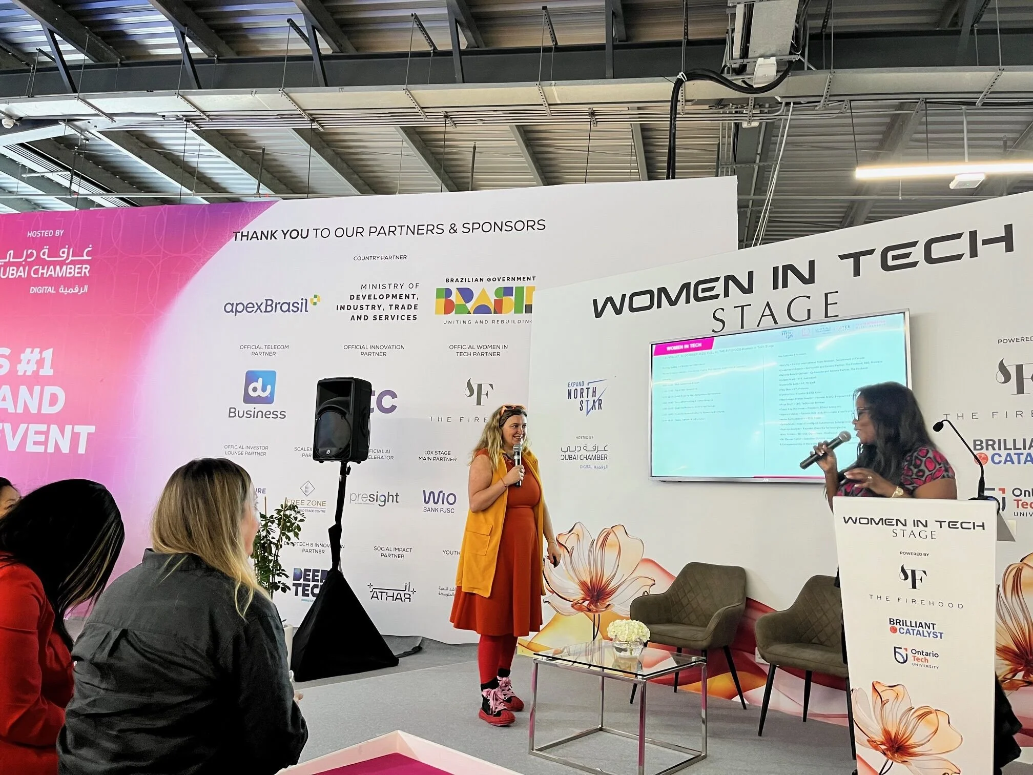 Cynthia also took the stage as a keynote speaker on the Women in Tech Stage, delivering a talk titled “Startups as Engines of Sustainable Growth and Resiliency.”